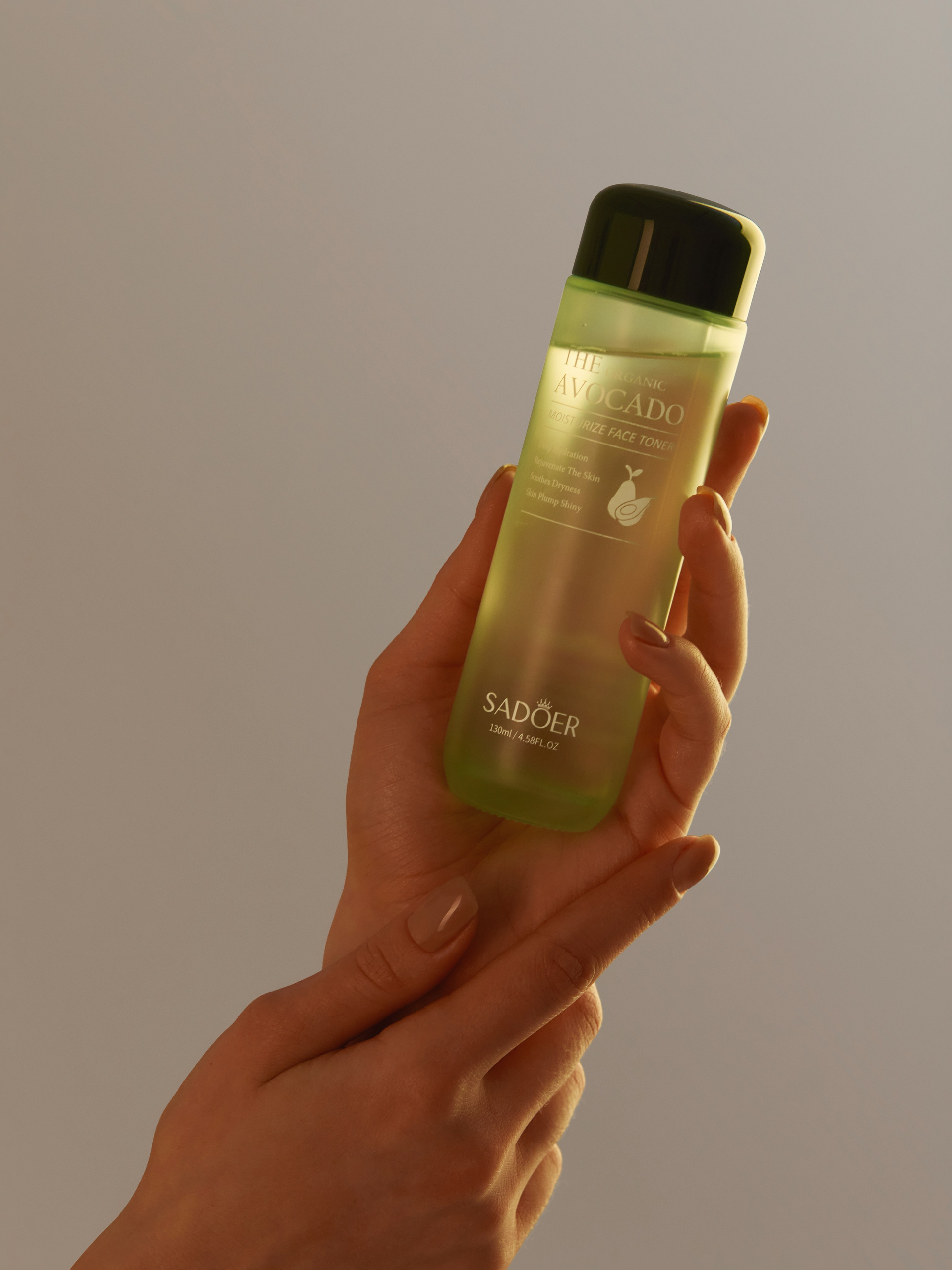 Сыворотка для лица. Пузырек в руках.